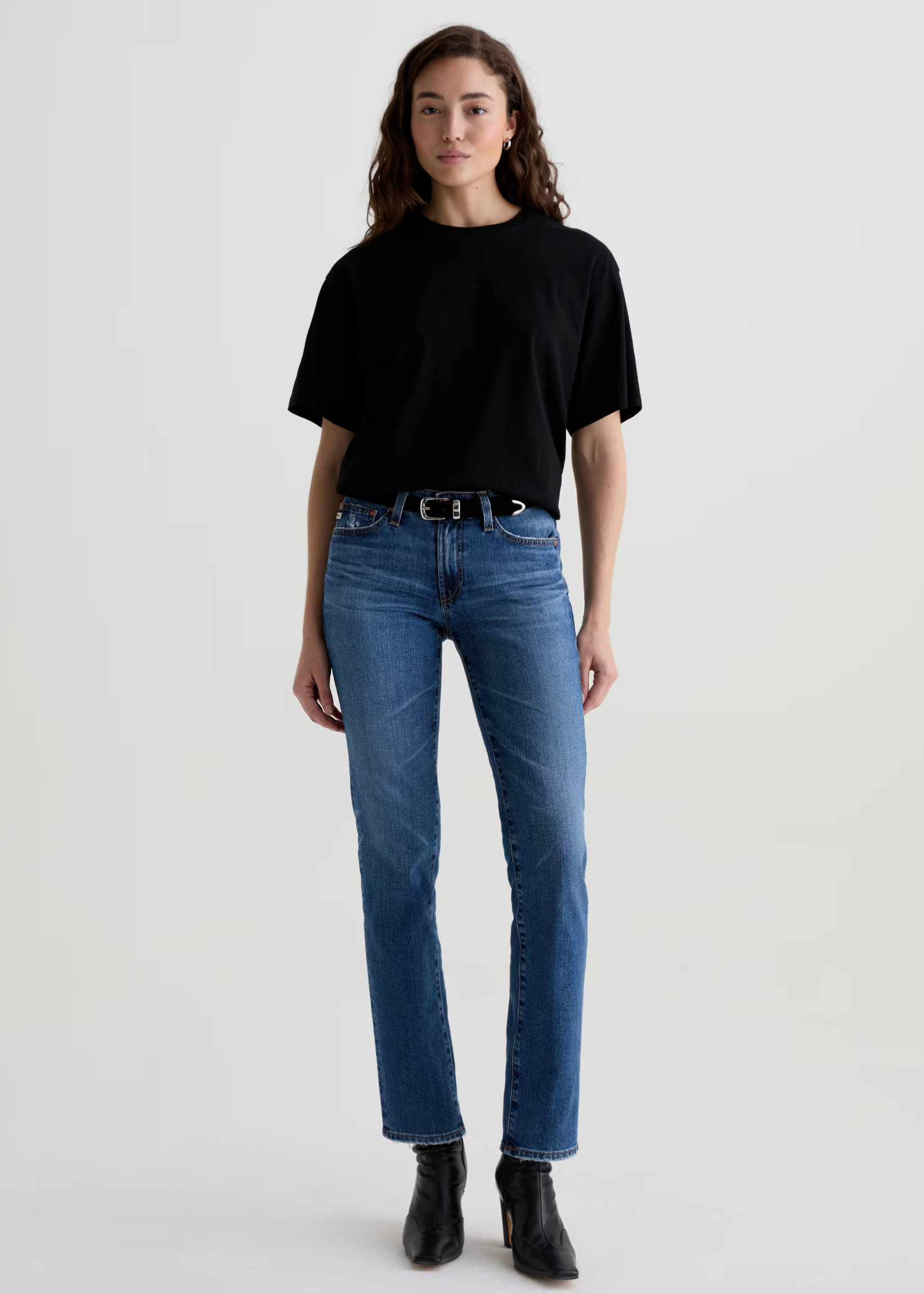 The Sandra is a low-rise straight jean. Crafted from Lead Denim, 11 Oz. for superior comfort and style. Designed with classic five-pocket styling and premium construction for everyday wear. Shown here in 15 Years Prague, AG-ed™ to emulate 15 years of wear—offering rich character and an authentically broken-in feel.