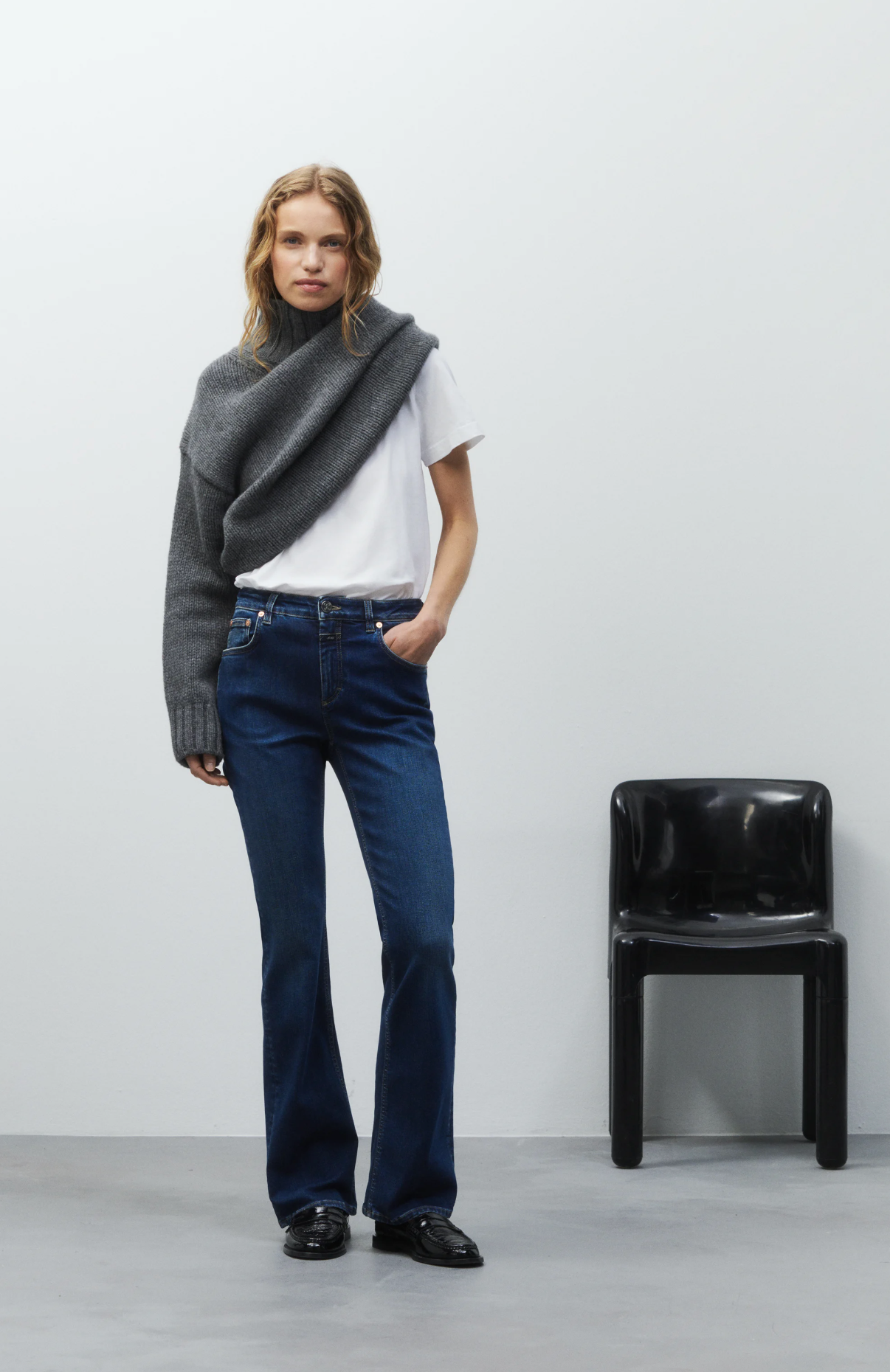 The Jovanna denim features a low-rise flared fit with regular leg length. Made from organic stretch fabric with a durable twill weave by the famous Candiani mill, these jeans offer particular softness and shape retention. Made in Italy.