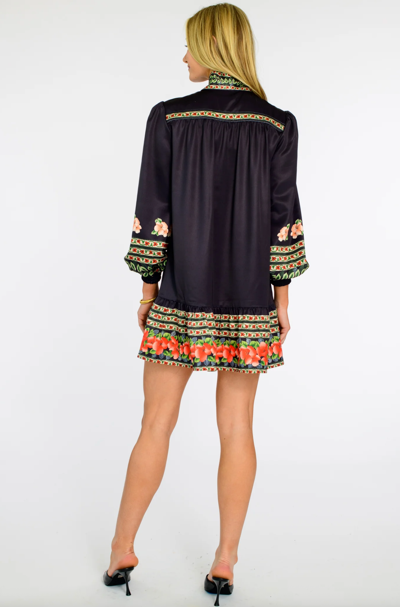 Our darling, feminine Brit Bow blouse just got even better! We added a ruffle hem skirt, turning this vintage 80's inspired silhouette into the cutest Holiday mini dress. Pair with some black tights and heels for an easy, chic look.