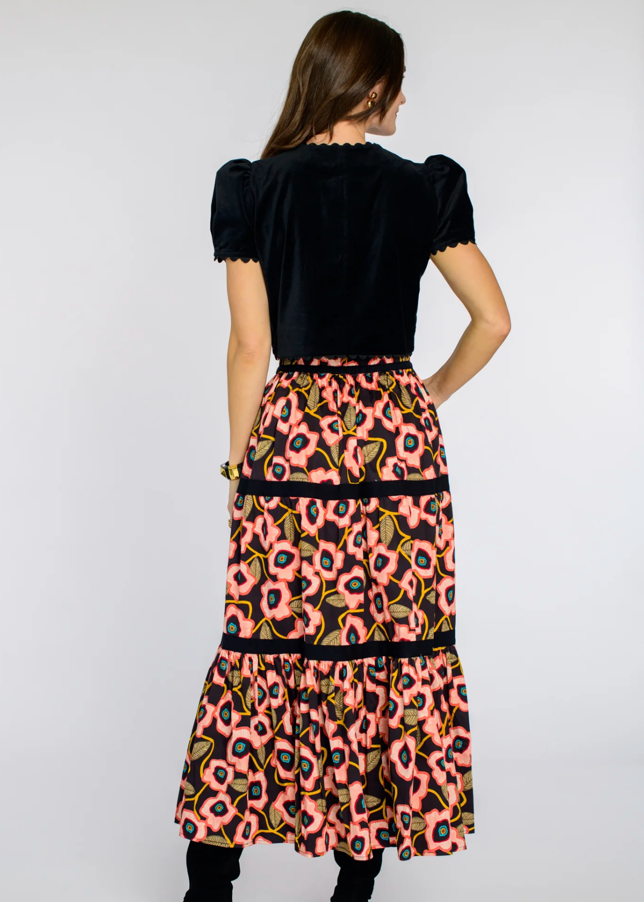 Our button-front Coco is a darling silhouette that can be worn as a top or jacket. With puffed sleeves, ric rac trim, and oversized buttons, she is the sweetest wardrobe addition to wear as part of a set or layered over sleeveless dresses.