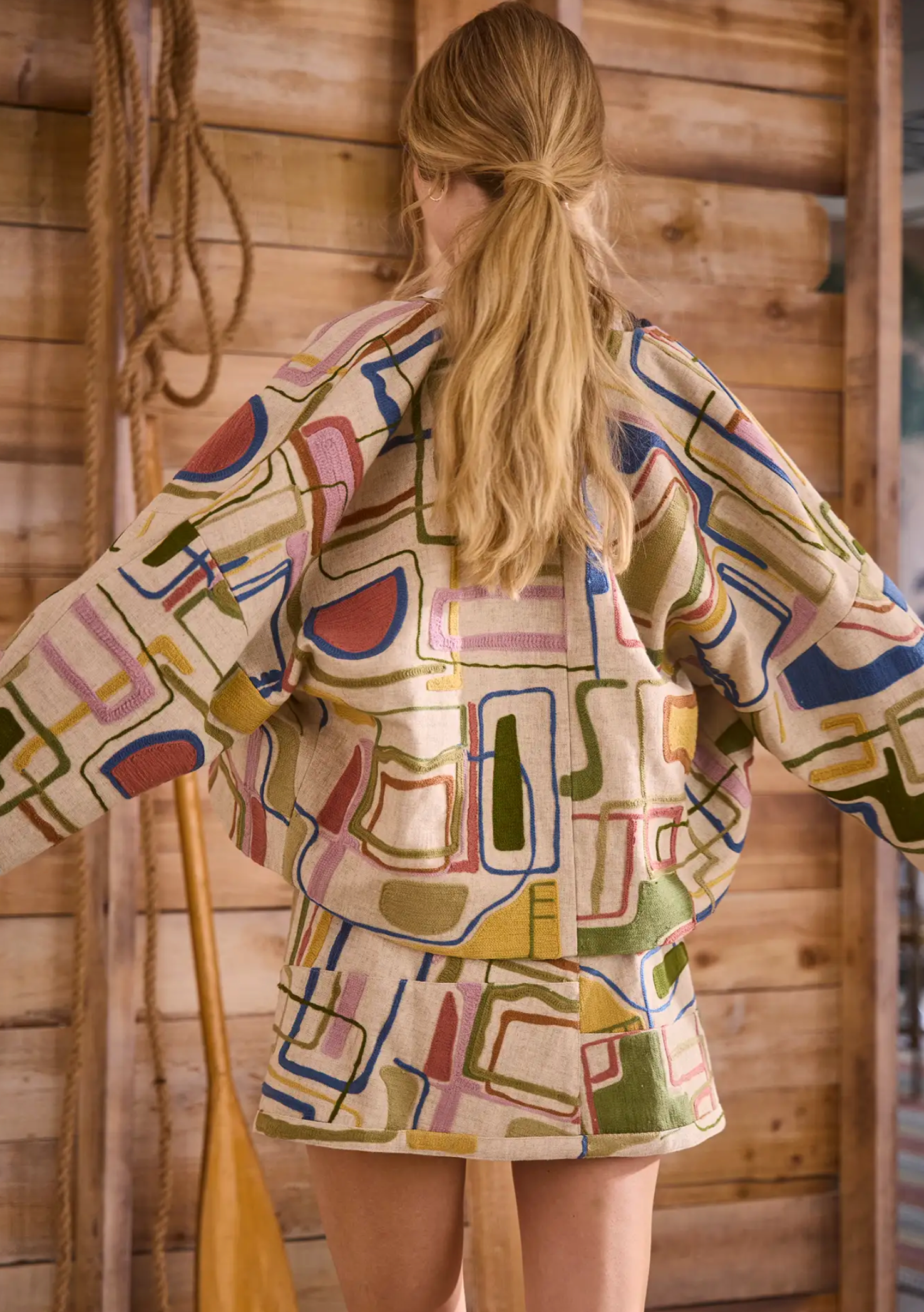 Meet Miro, the effortless throw-on jacket with artful polish. Cut in Montauk tapestry–embroidered linen and mixed-media textiles sourced from India, it’s relaxed and unstructured with a curved, open front (no closure) and long, tapered dolman sleeves. The interior is fully finished for a reversible-like feel, so it looks as beautiful inside as out. Pair it with the matching Powell Skirt for a statement set, or wear it solo over anything for instant texture and ease