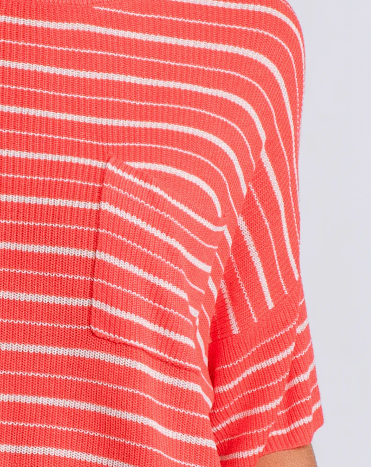 Elevate your casual wardrobe with this oversized crew neck tee featuring a striking two-tone multi-stripe pattern. The relaxed fit offers comfort and style, while a functional chest pocket adds practical detail. Perfect for layering or wearing solo, this versatile piece transitions effortlessly from day to night. Crafted for everyday wear, it's an essential addition to any modern closet.
