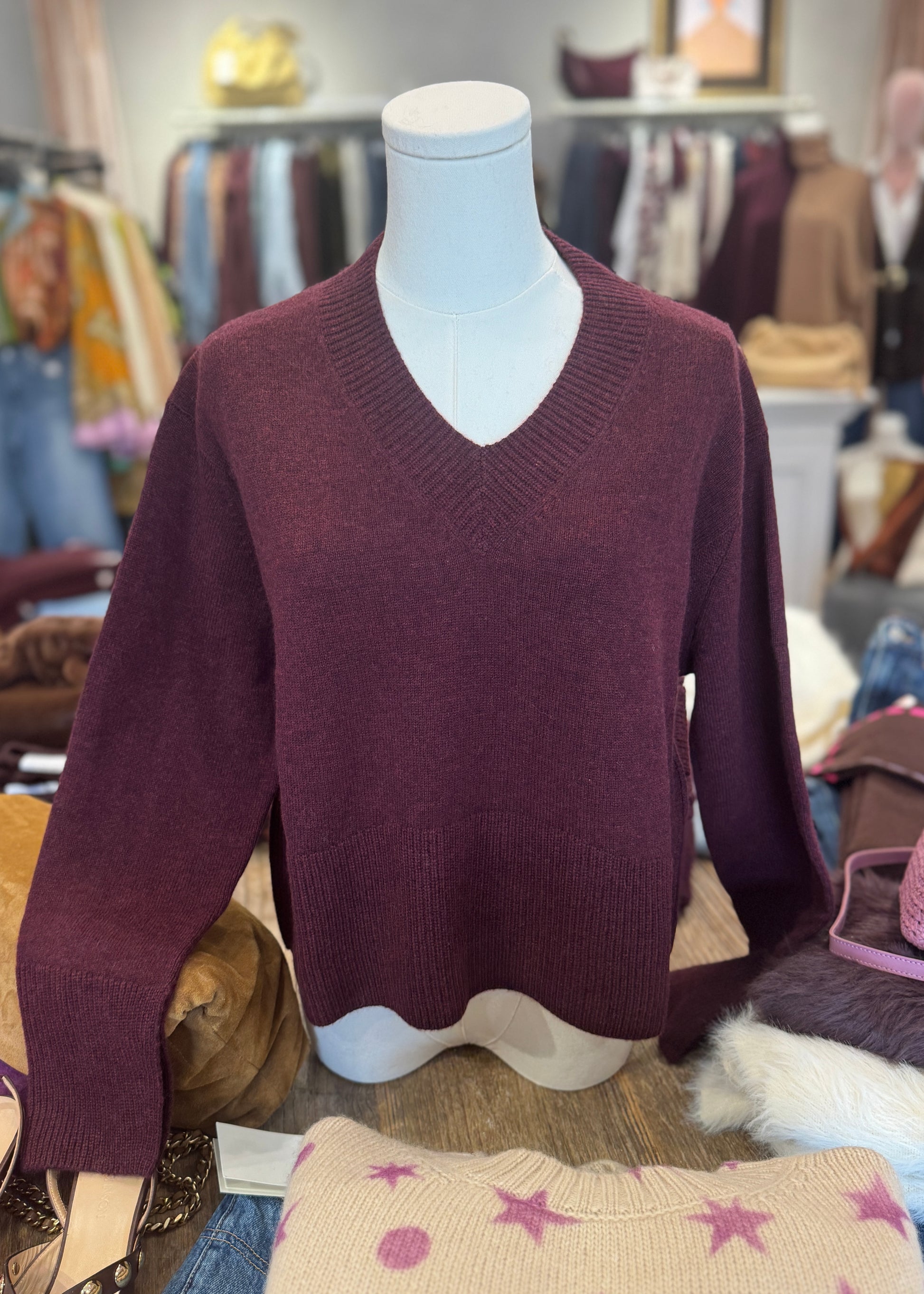 Experience ultimate comfort and style with the Jemima Sweater. Made with luxurious jersey knit cashmere, this v-neck top is both soft and chic. Its slightly cropped design adds a trendy twist to any outfit.