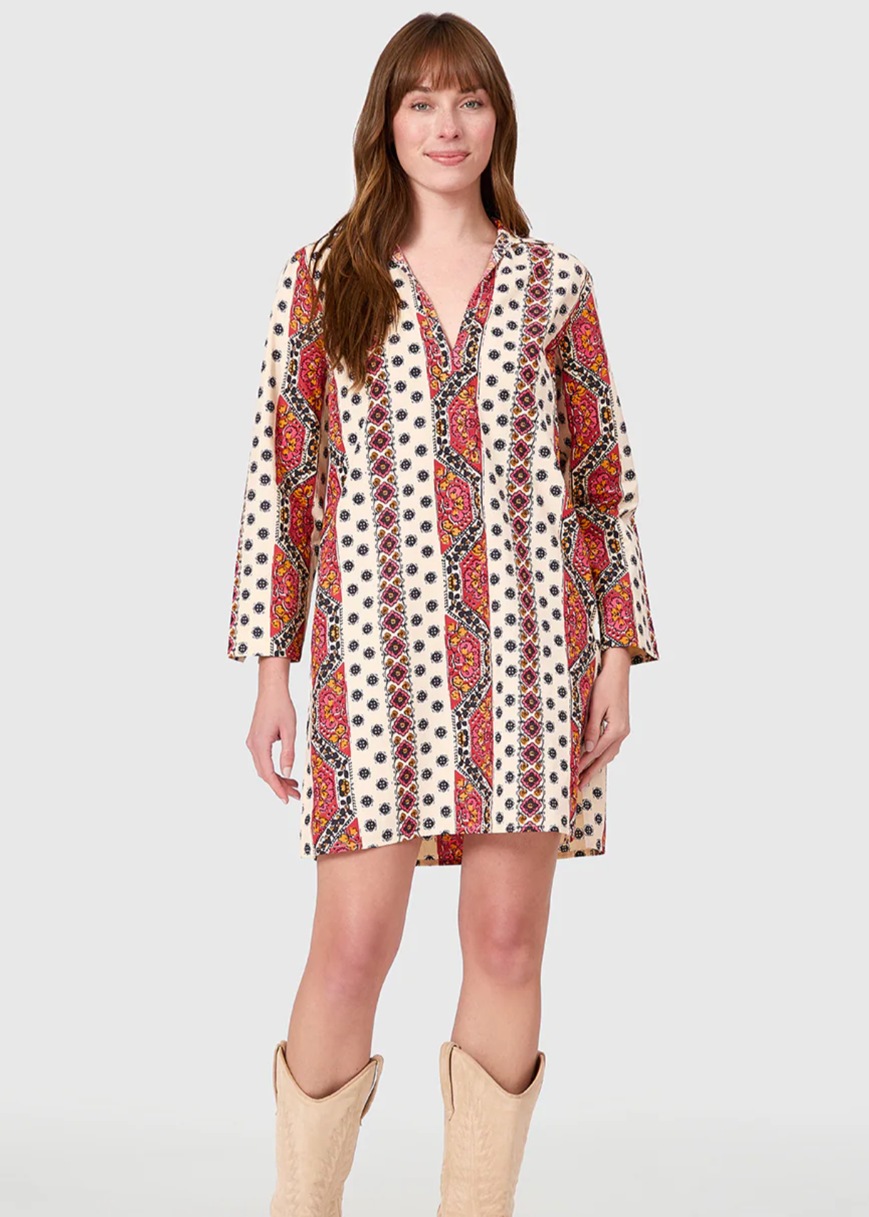 A shorter version of our best-seller, the Classic Kurta! The flattering caftan silhouette features a deep v neck and side slit hem for that relaxed, boho-chic look we love. You'll want to pack this one for your next getaway!