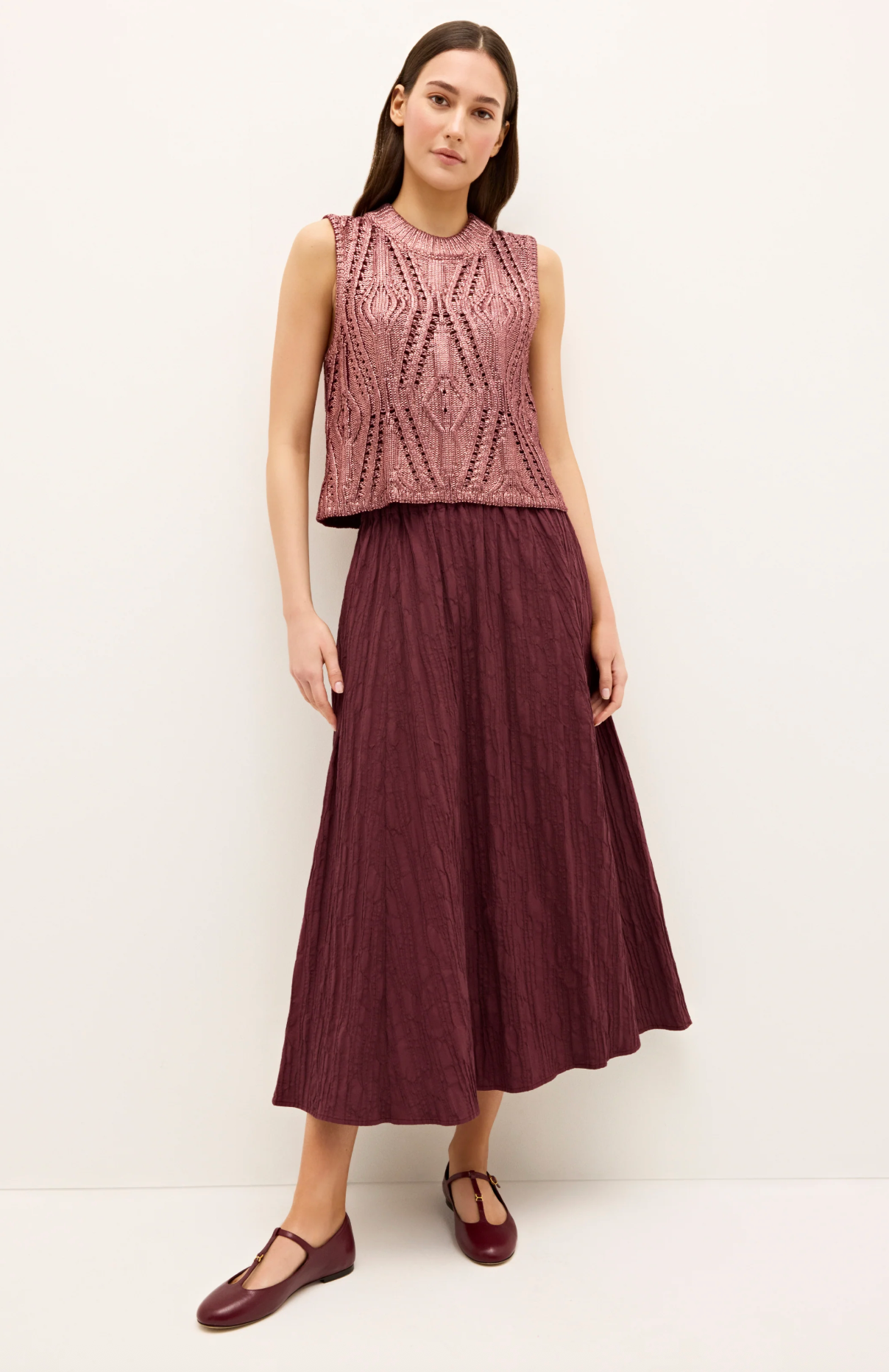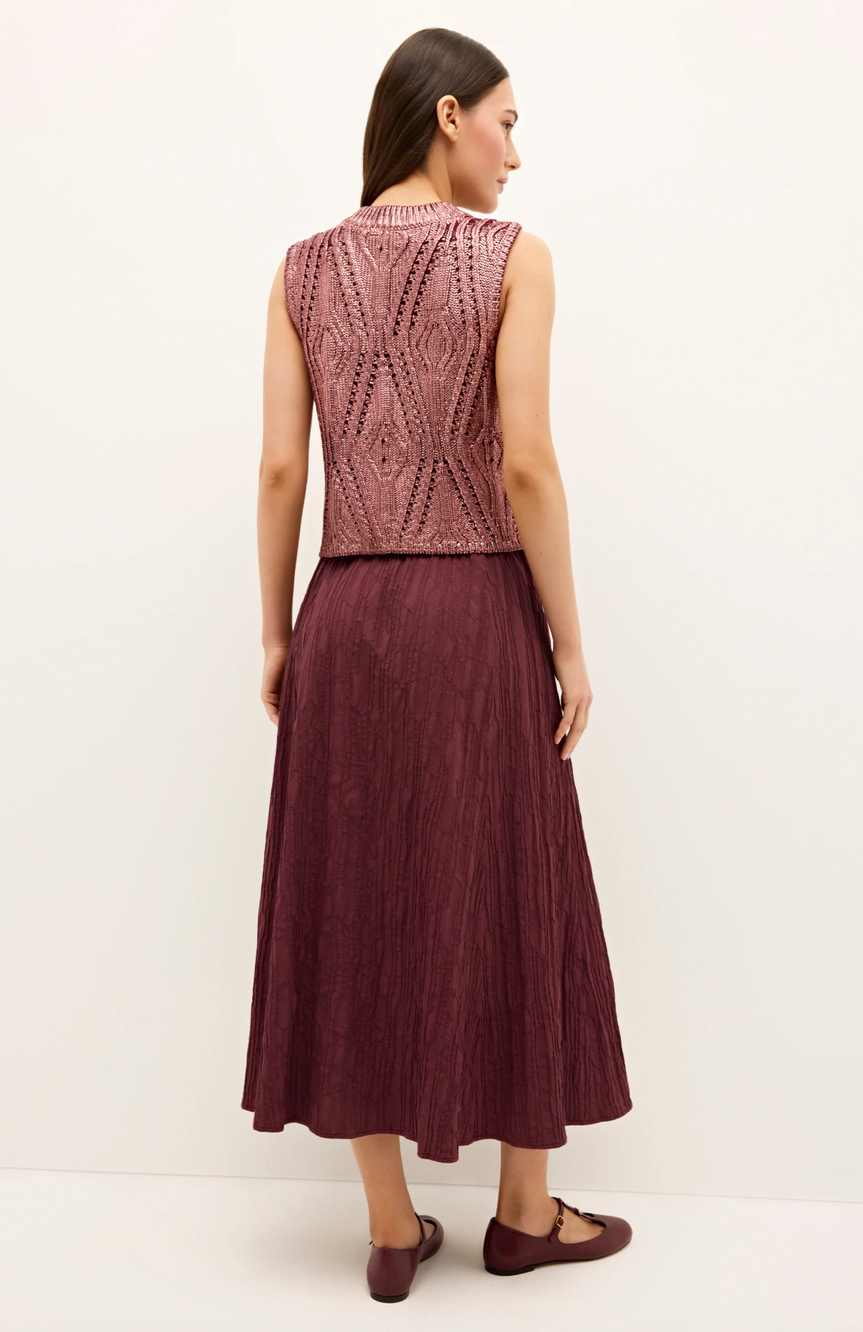 One of our favorite new styles for fall, the McGuire top is cut from a foiled knit that catches light and adds rich texture to any look. The relaxed silhouette subtly bells at the hem for an easy, forgiving fit.