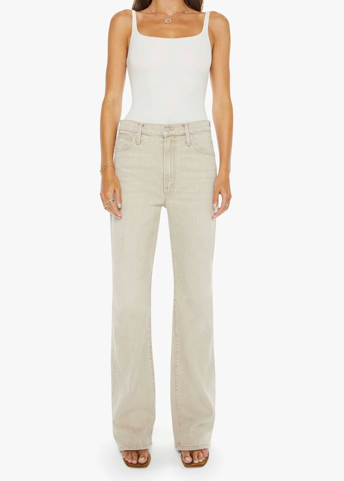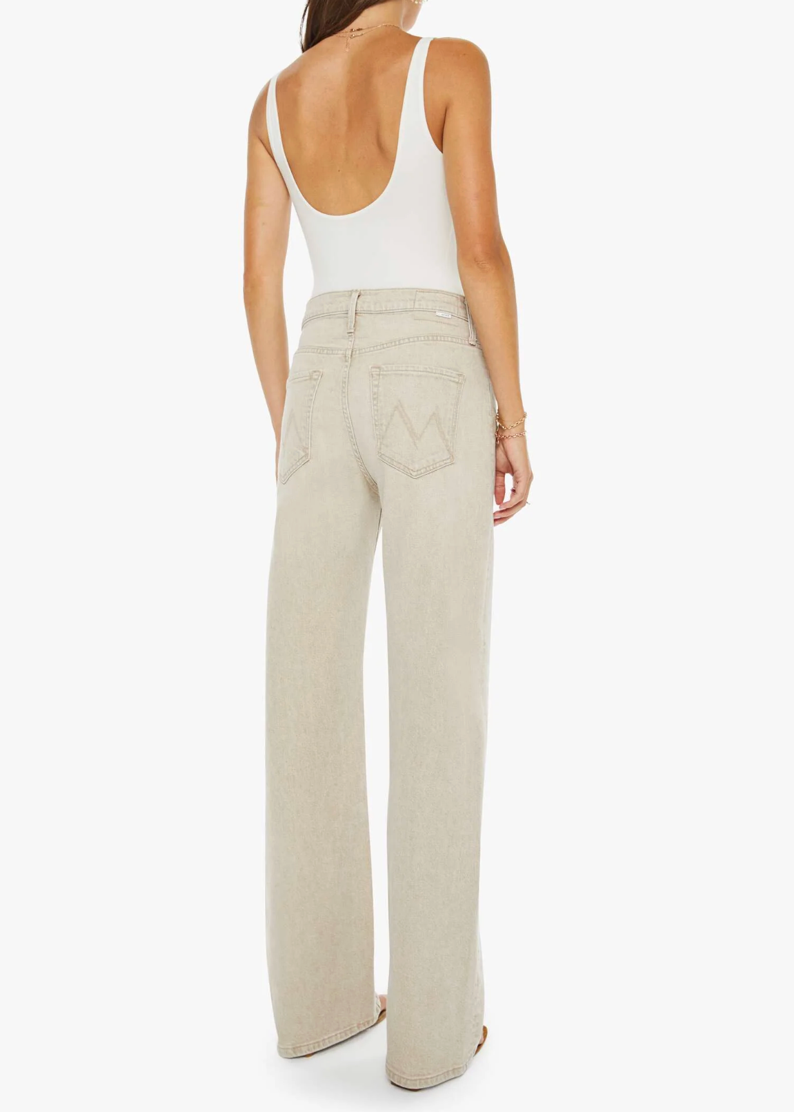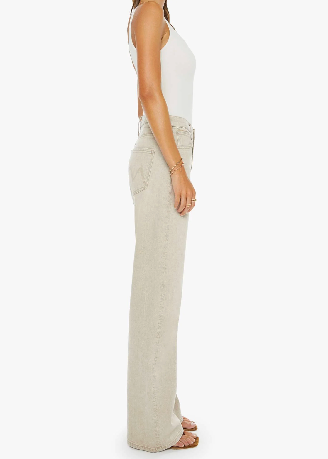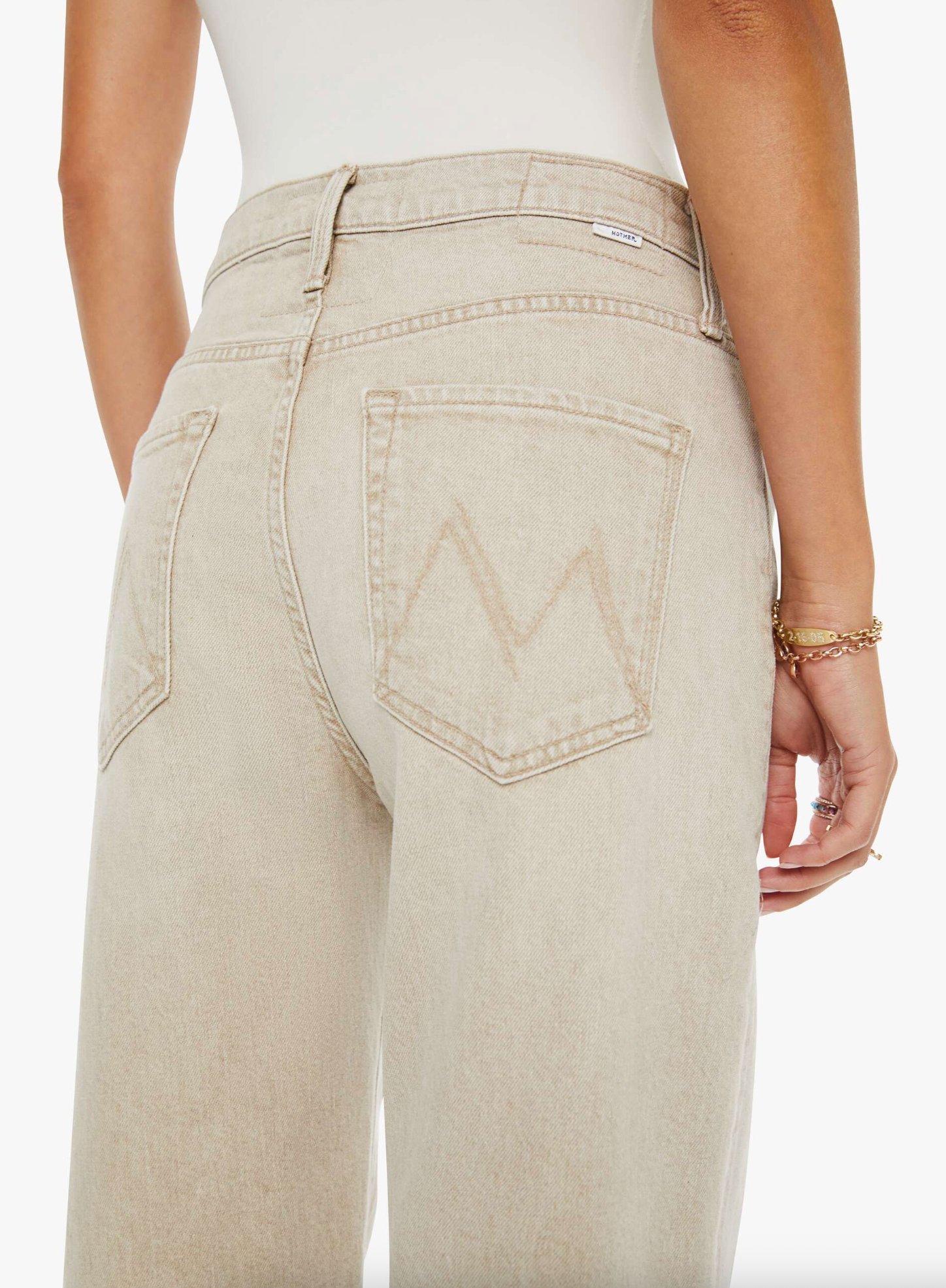 Jeans designed to sit on the hips with a zip fly, slouchy fit, loose straight leg and a 32-inch inseam with a clean hem. Made from semi-rigid SUPERIOR denim, Caramel is a faded khaki with tan stitching.