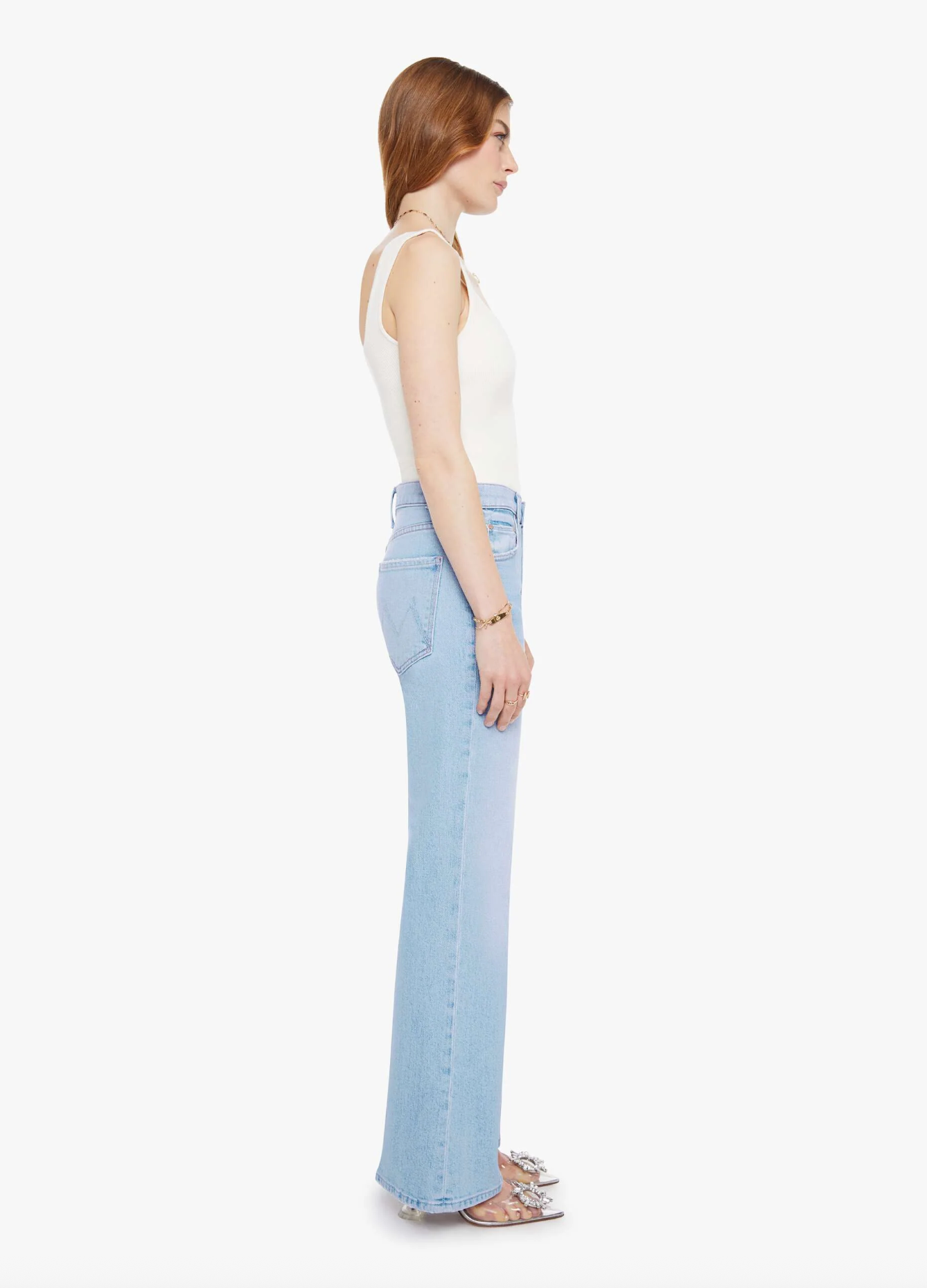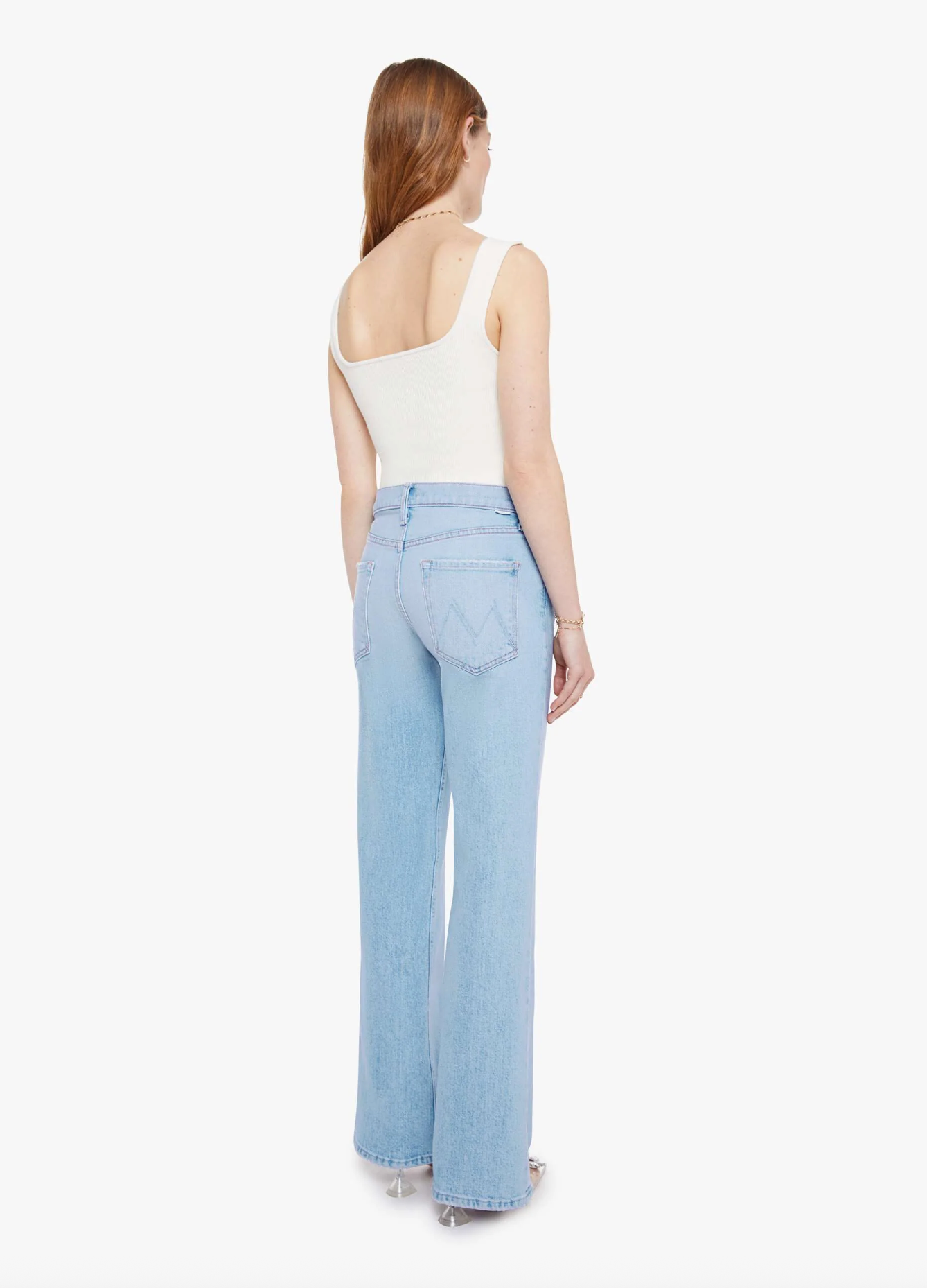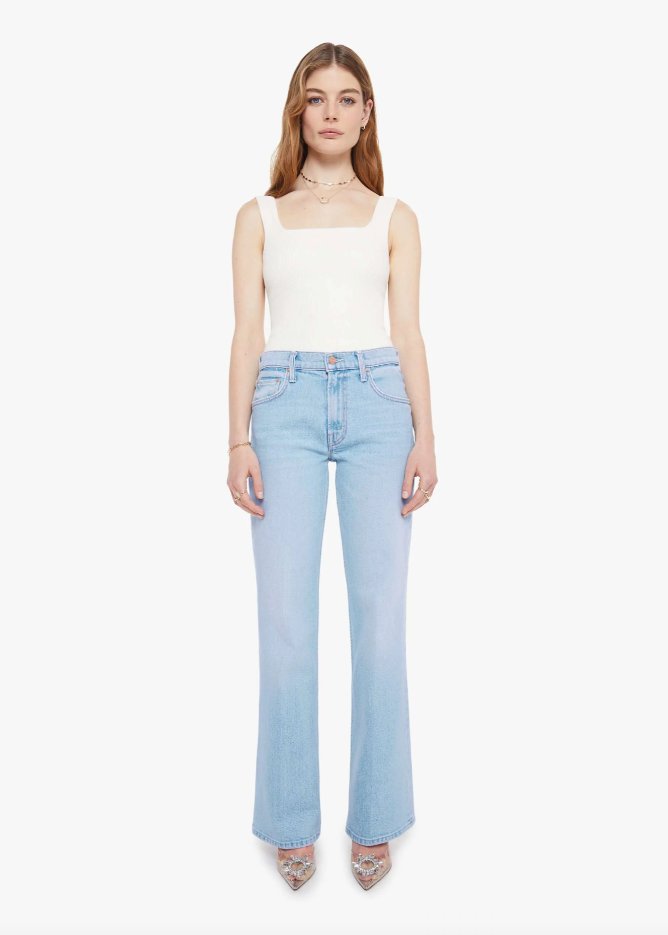 The cat's meow. A high-rise bootcut with a zip fly, looser leg and a long 32-inch inseam with a clean hem. Made from semi-rigid denim, Cool As A Cat is a light blue with subtle whiskering and fading at the knees.