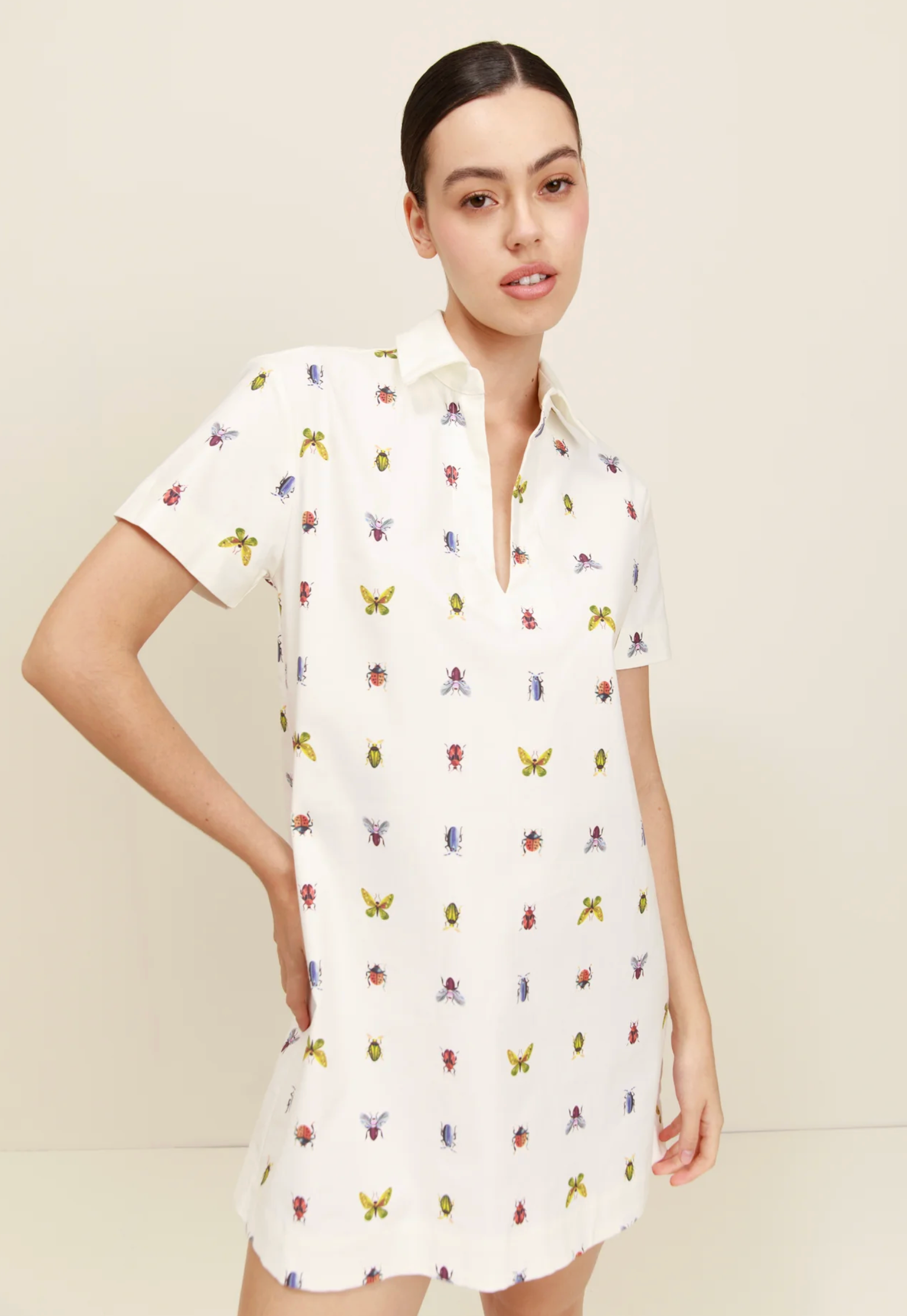 Playful and sophisticated, the Wasp Dress reinvents cotton with a print full of colorful insects. Its clean silhouette and lightness make it ideal for everyday wear, while the bold pattern makes it a statement piece.