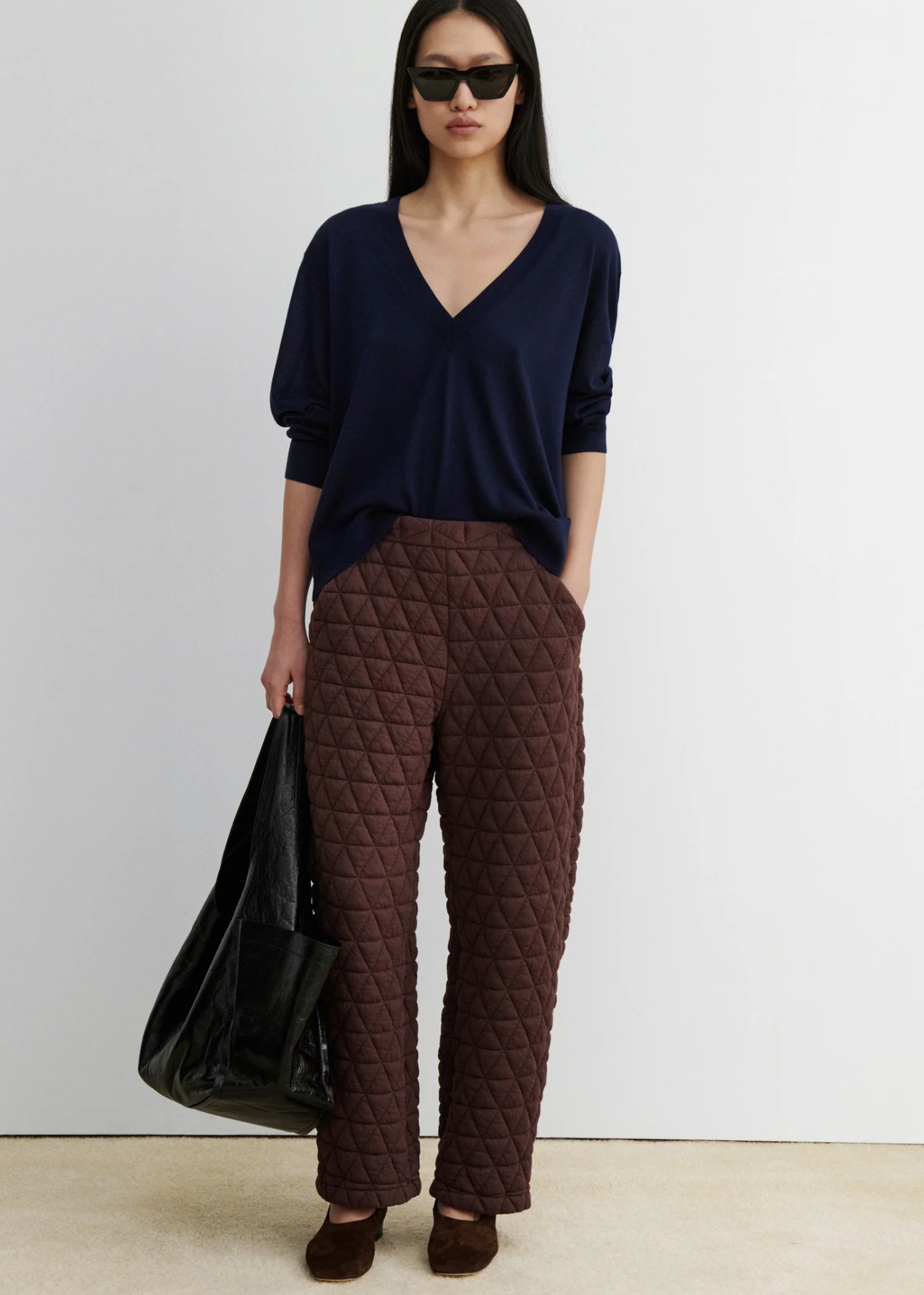 High-waist elevated sweatpant with curved slip pockets in Diamond Quilted Jersey. Pair with our matching Alfond Top for an elevated sweatsuit, or with a blazer for a more refined look.