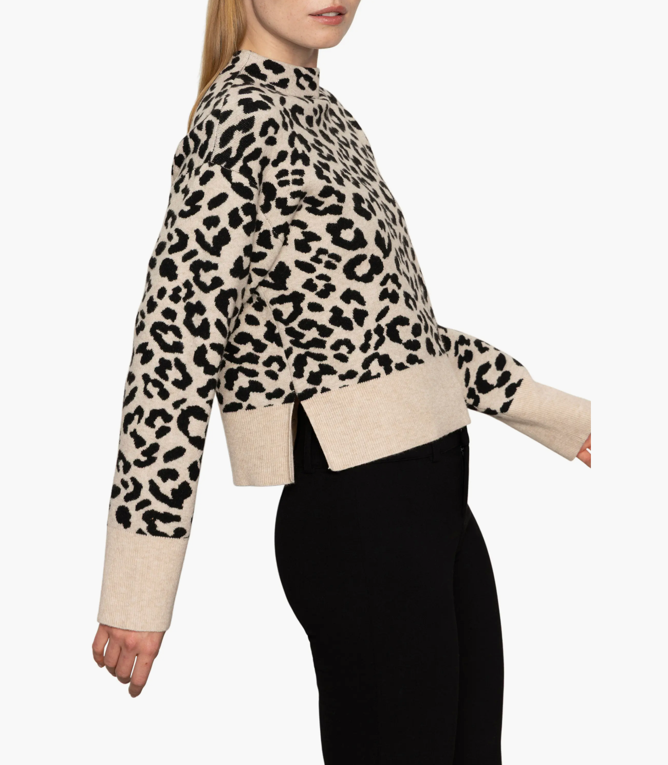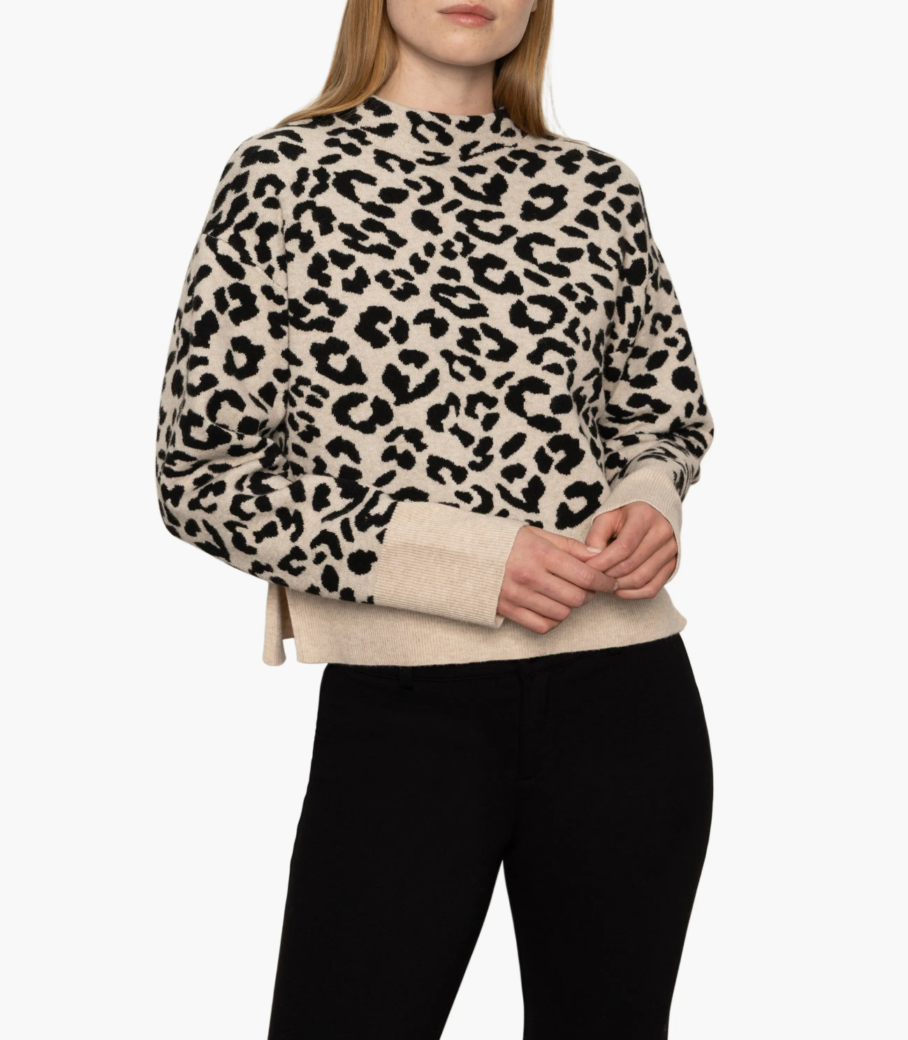A boxy fit adds relaxed vibes to a waist-skimming sweater topped with a neat mock neck.
