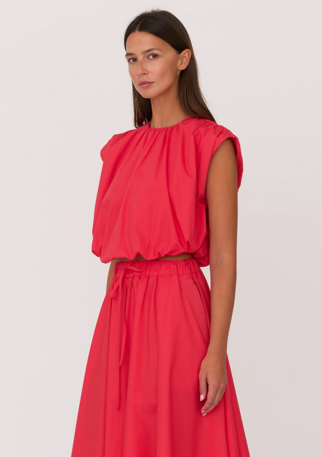 A feminine poplin shirt with soft volume and drape. The Lya features a hidden elastic waist for subtle shape and a delicate button closure at the back. Light, effortless, it pairs beautifully with a pair of high waisted jeans.