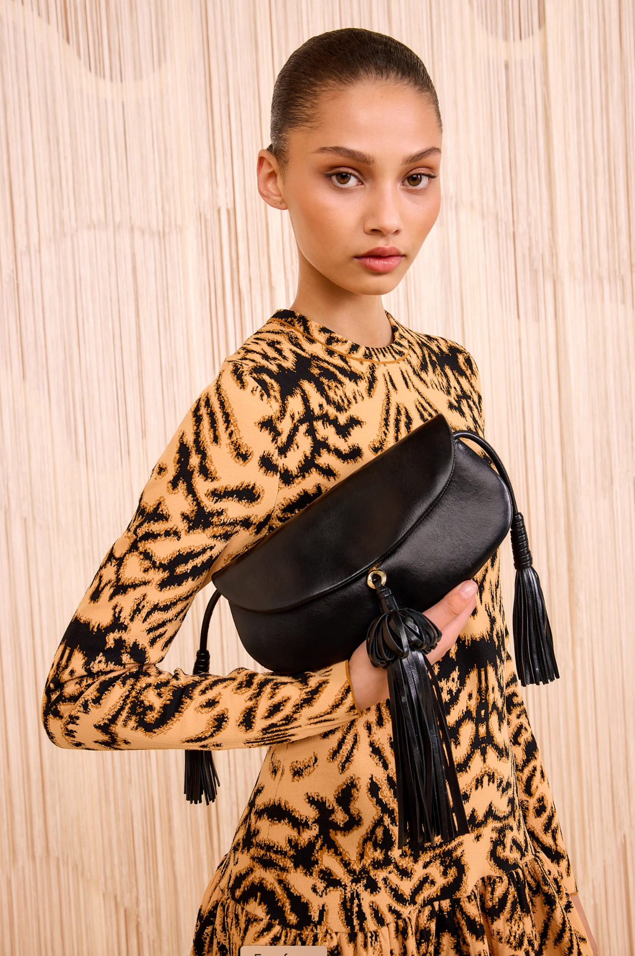 Debuting on the AW25 runway, the Paloma Bag is the newest addition to the Ulla Johnson handbag lineup, arriving in supple black leather. This artful silhouette is adorned with hand-shaped tassels inspired by the organic beauty of botanicals, while the straps embody seamless functionality—adjust to wear as a shoulder bag, crossbody, or detach for an evening clutch.