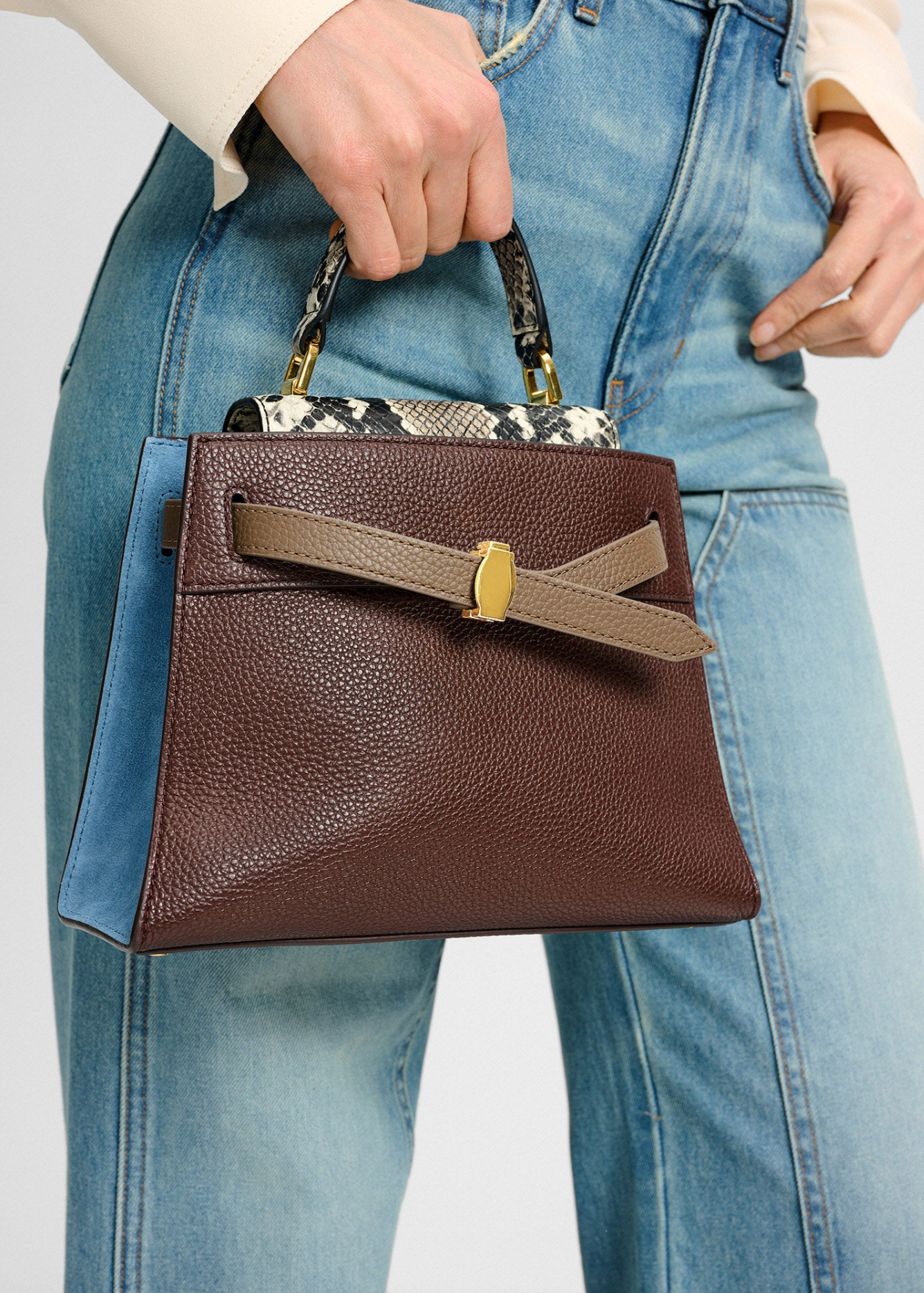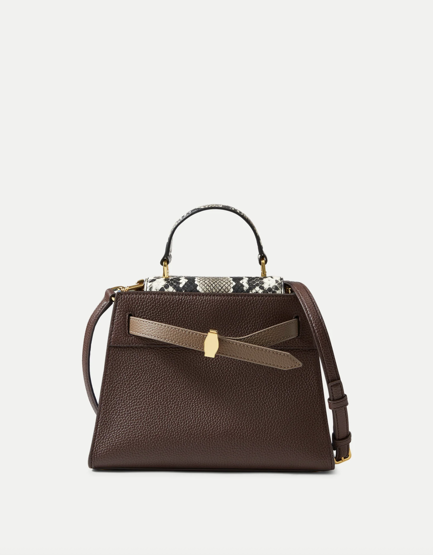 The Dash you know and love—now in a fresh new shape. Crafted from brown pebbled leather, the updated Dash silhouette features a structured top handle, a slightly taller body for added capacity, and a python-embossed full-flap magnetic closure to keep your essentials secure. Along with our signature adjustable belted strap, it includes a removable, adjustable shoulder strap for maximum versatility and an interior zip pocket for easy organization.