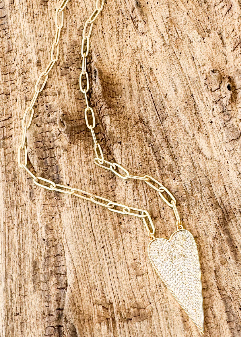 Wear your heart on your sleeve—or better yet, dangle it from your neck. This large paperclip necklace features a stunning pavé dagger heart that catches the light with every move. Bold, edgy, and unapologetically fun, it's the perfect statement piece for anyone who loves mixing romance with a little rebellious flair. Layer it, stack it, or let it shine solo. Either way, you're guaranteed to turn heads.
